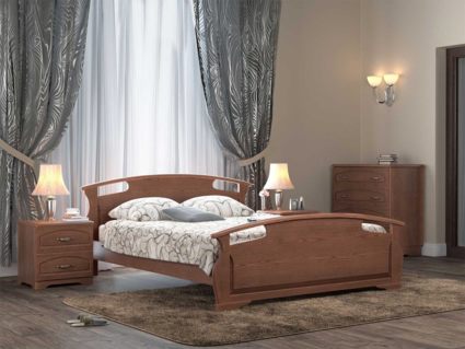 Двуспальная шикарная кровать Афродита из массива ясеня с высоким изножьем - это лучший выбор для Вас и Вашей семьи. Сложные гнуто-клееные элементы декора кровати, превосходно впишутся в любой интерьер. Кровать из массива ценной породы дерева – ясеня - гарантия экологической чистоты в Вашем доме. Такие кровати отличаются долговечностью и надежностью. Вся мебель покрывается высококачественным полиуретановым лаком (Испания), что защищает поверхность от царапин и прочих повреждений.