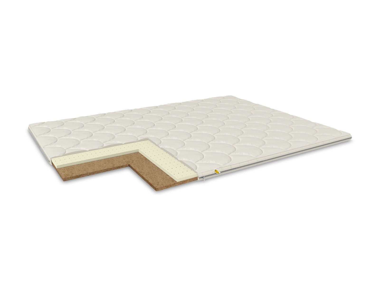 Съемный чехол наматрасника, выполнен из хлопкового жаккарда, простеганного на экологически чистом материале Hollcon. Ткань обработана специальной антибактериальной пропиткой SANITIZED (Швеция). Пропитка обеспечивает полное уничтожение плесневых грибков, не дает развиваться микроорганизмам, пылевым клещам и микробам. Чехол можно снимать и стирать, что очень просто и удобно. У наматрасника присутствуют по углам 4 резинки для лучшего скрепления с матрасом. В качестве опции по периметру могут быть вшиты липучки для скрепления с каркасом основания.