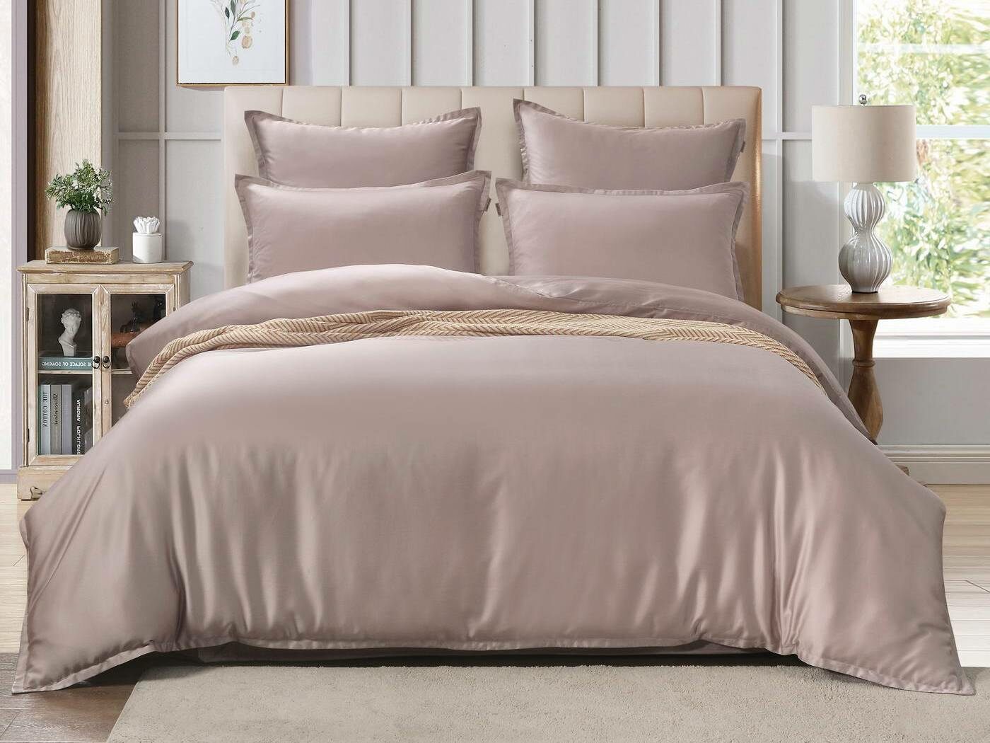 Комплекты постельного белья Ансель: нежность и комфорт каждую ночь Ищете постельное бельё, которое подарит вам незабываемый комфорт и уют? Тогда комплекты постельного белья Ансель из тенселя — идеальный выбор! Тенсель — это натуральная ткань, изготовленная из волокон эвкалипта. Она обладает рядом преимуществ перед хлопковыми тканями: более нежная, шелковистая и приятная на ощупь. Комплекты постельного белья Ансель включают в себя наволочки, простыню и пододеяльник. Они выполнены из 100% тенселя, что гарантирует высокое качество и долговечность. Одно из главных преимуществ тенселя — его способность пропускать воздух и хорошо впитывать и испарять влагу. Это обеспечивает оптимальный микроклимат во время сна, предотвращает появление неприятных запахов и бактерий. Ещё одно важное свойство тенселя — антибактериальный эффект. Это значит, что постельное бельё Ансель не вызывает аллергии и подходит для людей с чувствительной кожей. Уникальное свойство тенселя — климат-контроль. При высокой температуре в помещении ткань обладает лёгким и приятным охлаждающим эффектом, а при низкой создаёт ощущение тепла и комфорта. Комплекты постельного белья Ансель — это идеальный выбор для тех, кто ценит комфорт, качество и натуральность. Они станут отличным дополнением к вашему интерьеру и подарят вам незабываемые ощущения во время сна.