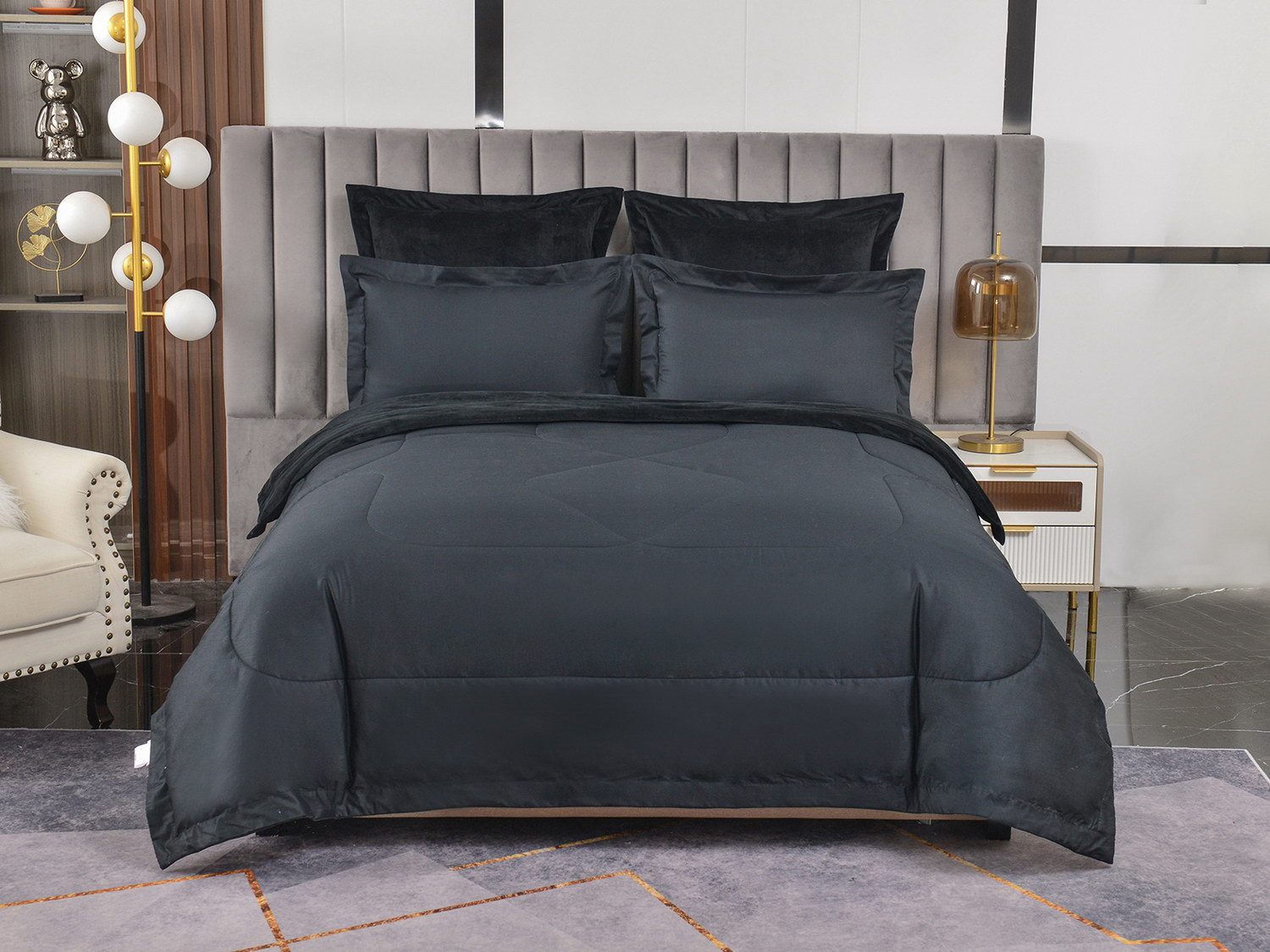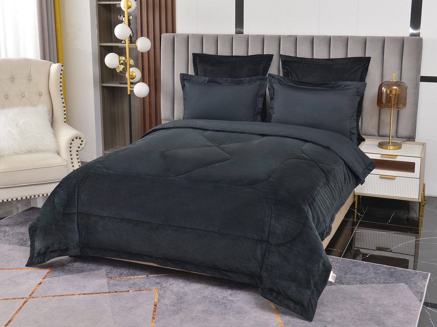 Изготовленный из качественной вискозы и мягкого хлопка трендовых цветов, комплект создаёт приятное ощущение на коже. Его экологичное наполнение из 100% эковолокна обеспечивает гипоаллергенные свойства, подарив вам спокойные и уютные ночи.