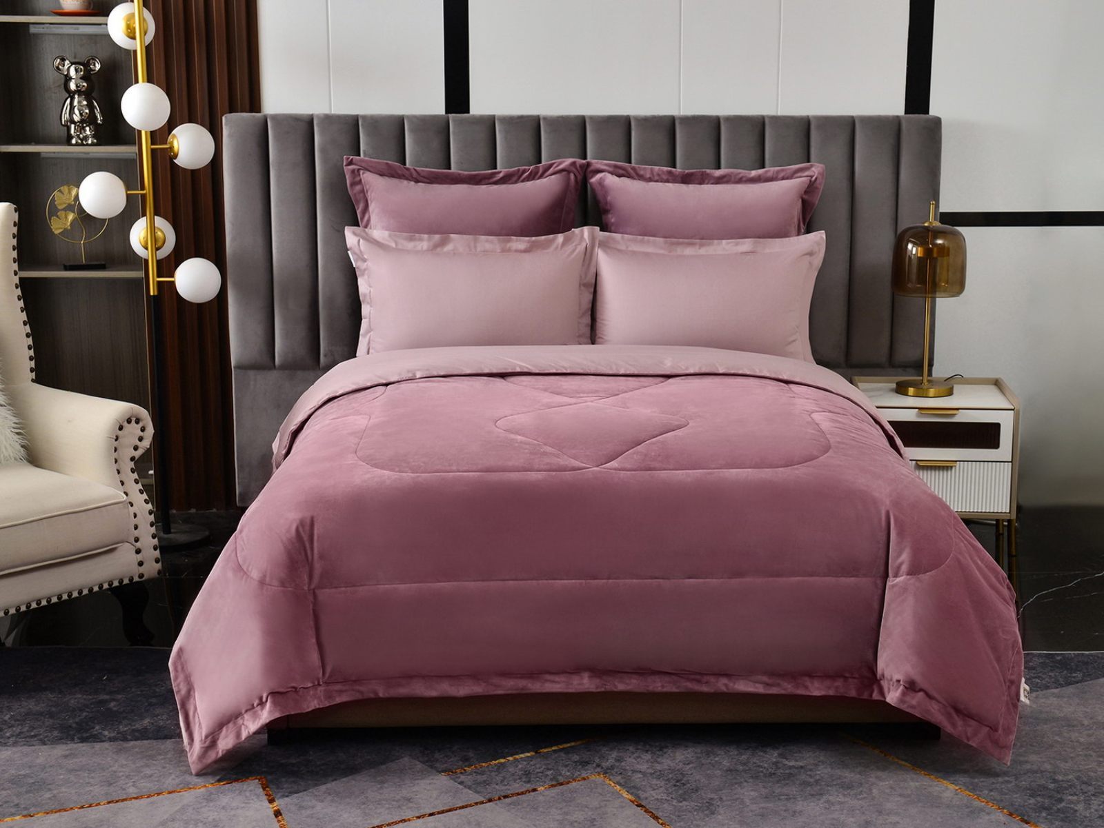 Изготовленный из качественной вискозы и мягкого хлопка трендовых цветов, комплект создаёт приятное ощущение на коже. Его экологичное наполнение из 100% эковолокна обеспечивает гипоаллергенные свойства, подарив вам спокойные и уютные ночи.
