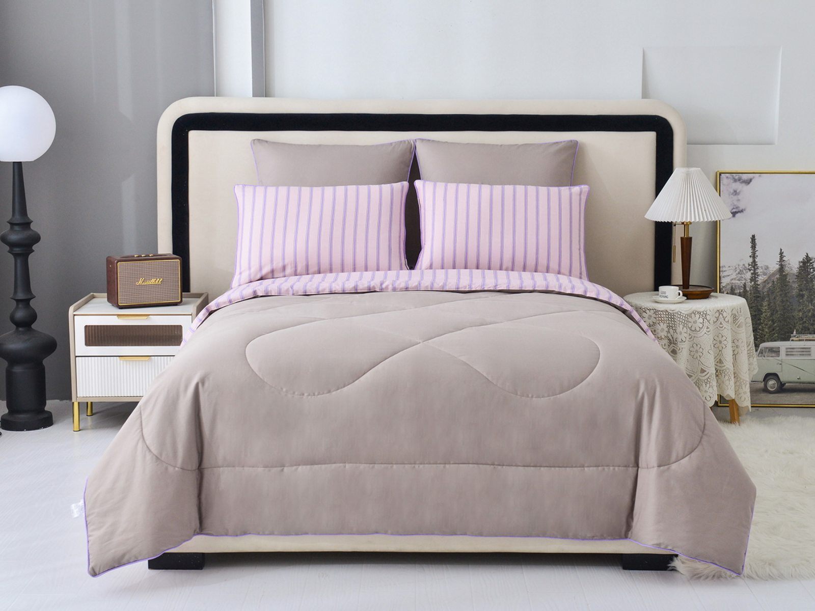 Особенность: двусторонняя модель, наволочки и одеяла декорированы кантом.