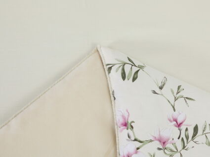 Обратная сторона одеяла – принтованный сатин натуральный хлопковый материал. На ощупь нежная и шелковистая, при этом комфортная и прочная ткань.