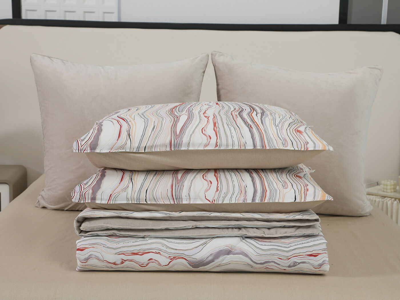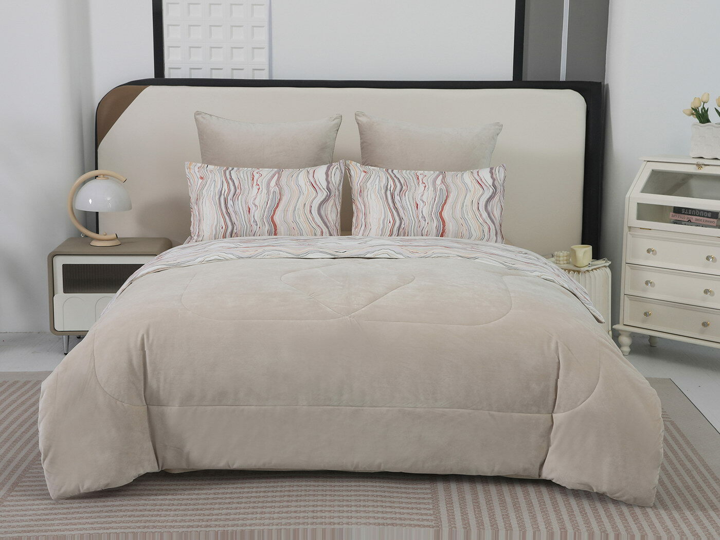 Новая коллекция комплектов «Роберто» с одеялом из однотонного велюра и принтованного сатина.