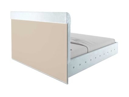 Для обивки кровати используется велюр – мягкий и бархатный материал, который дарит очень нежные соприкосновения. При стандартной комплектации обратная сторона изголовья выполняется из технического материала. Однако по желанию его можно заменить на основную обивку кровати.