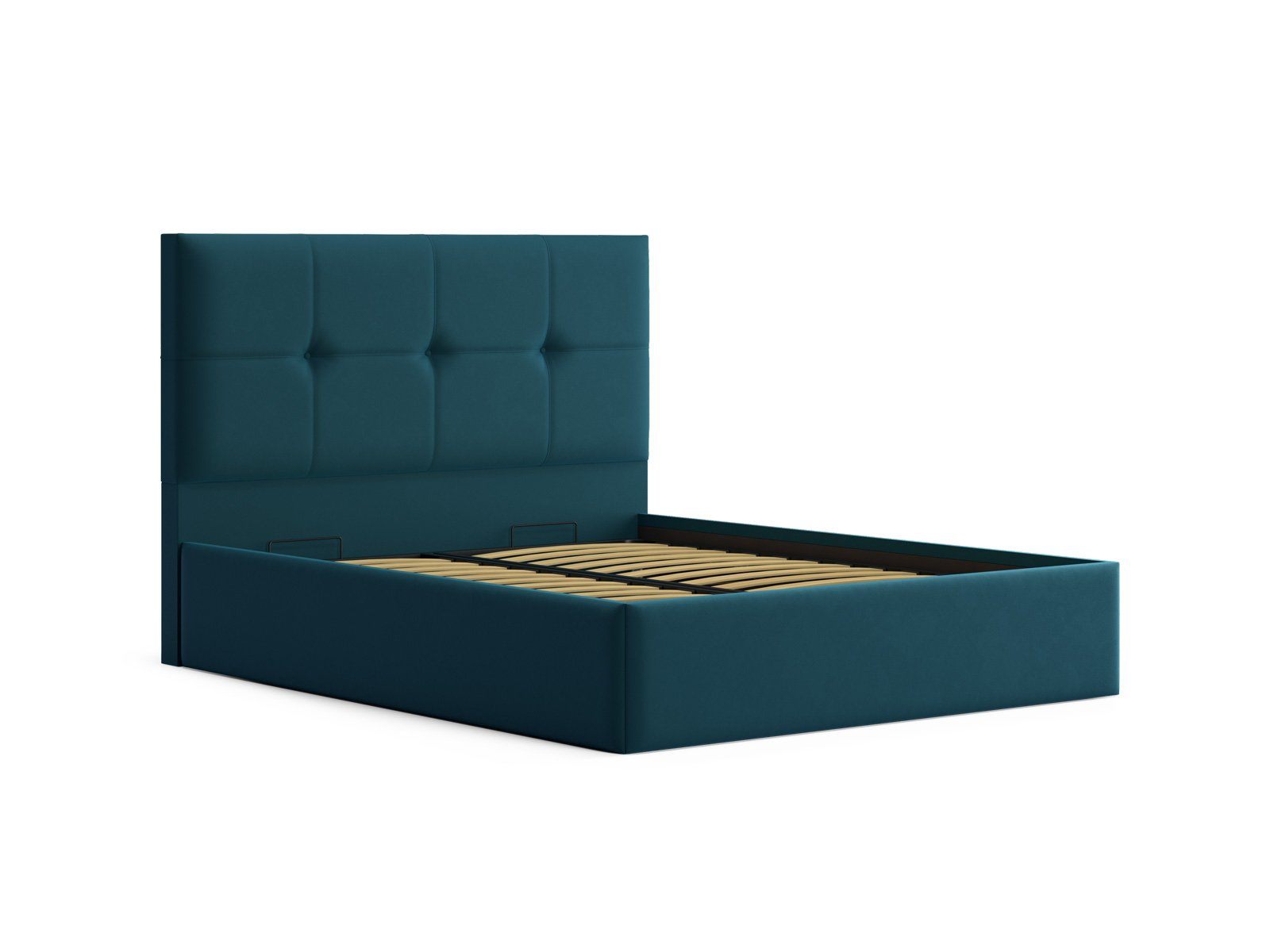 Мягкая кровать с обивкой из велюра.