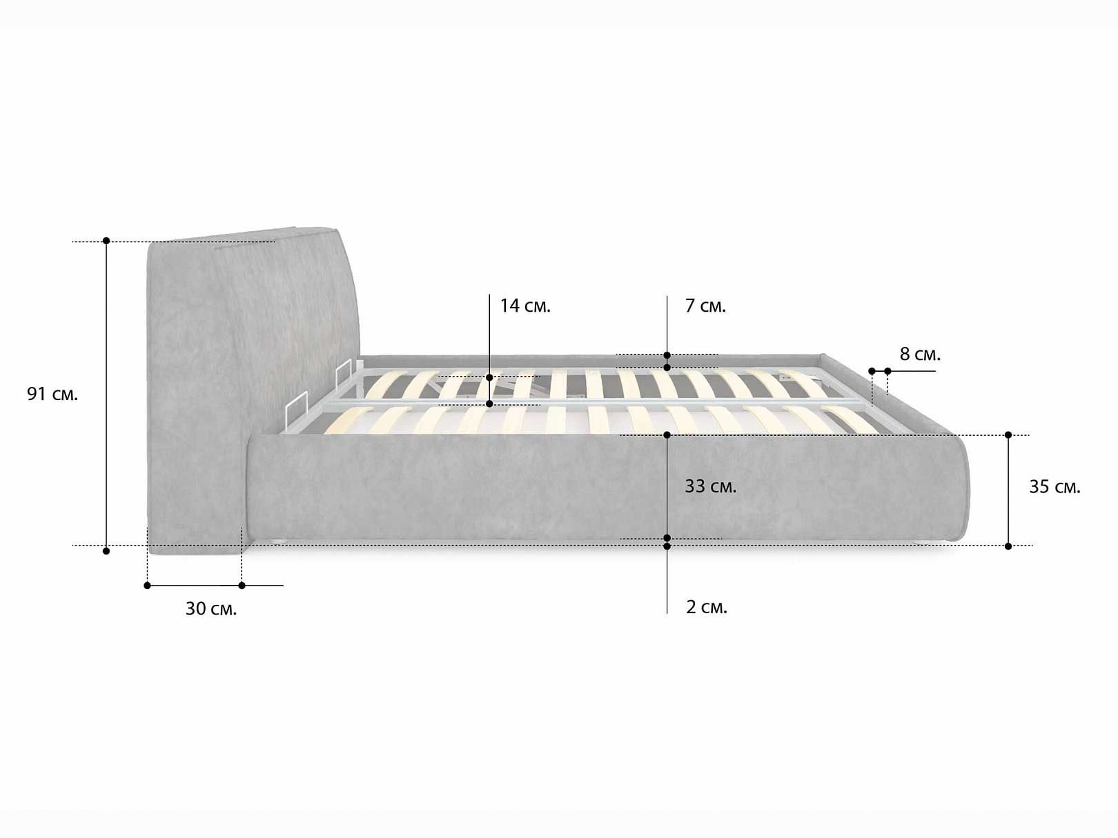 Допустимая высота матраса - 30 см.