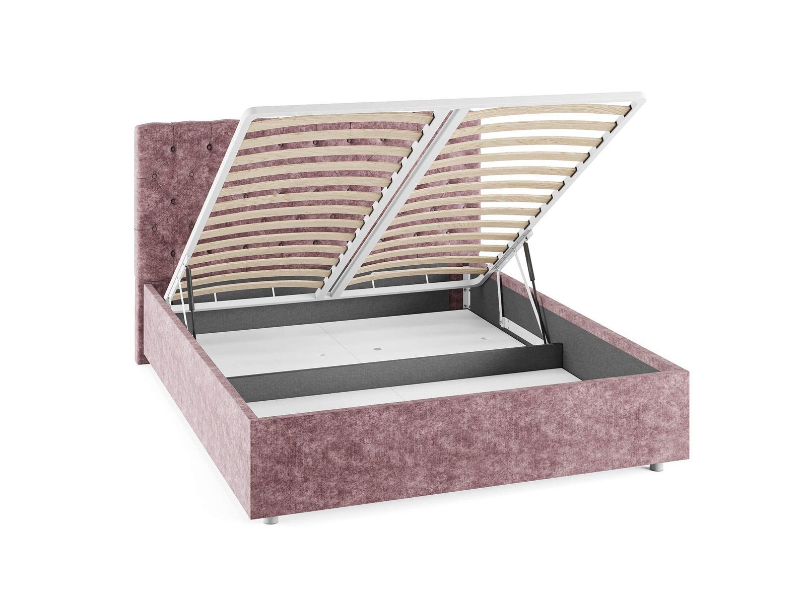 Кровать комплектуется металлическим основанием и подъемным механизмом со вместительным бельевым ящиком. Дно бельевого ящика легко сдвигается для обеспечения уборки под кроватью.
