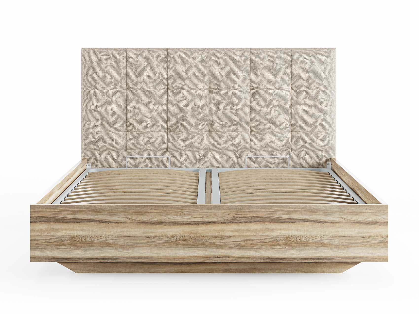 Кровать комплектуется металлическим основанием и подъемным механизмом со вместительным бельевым ящиком. Дно бельевого ящика легко сдвигается для обеспечения уборки под кроватью.