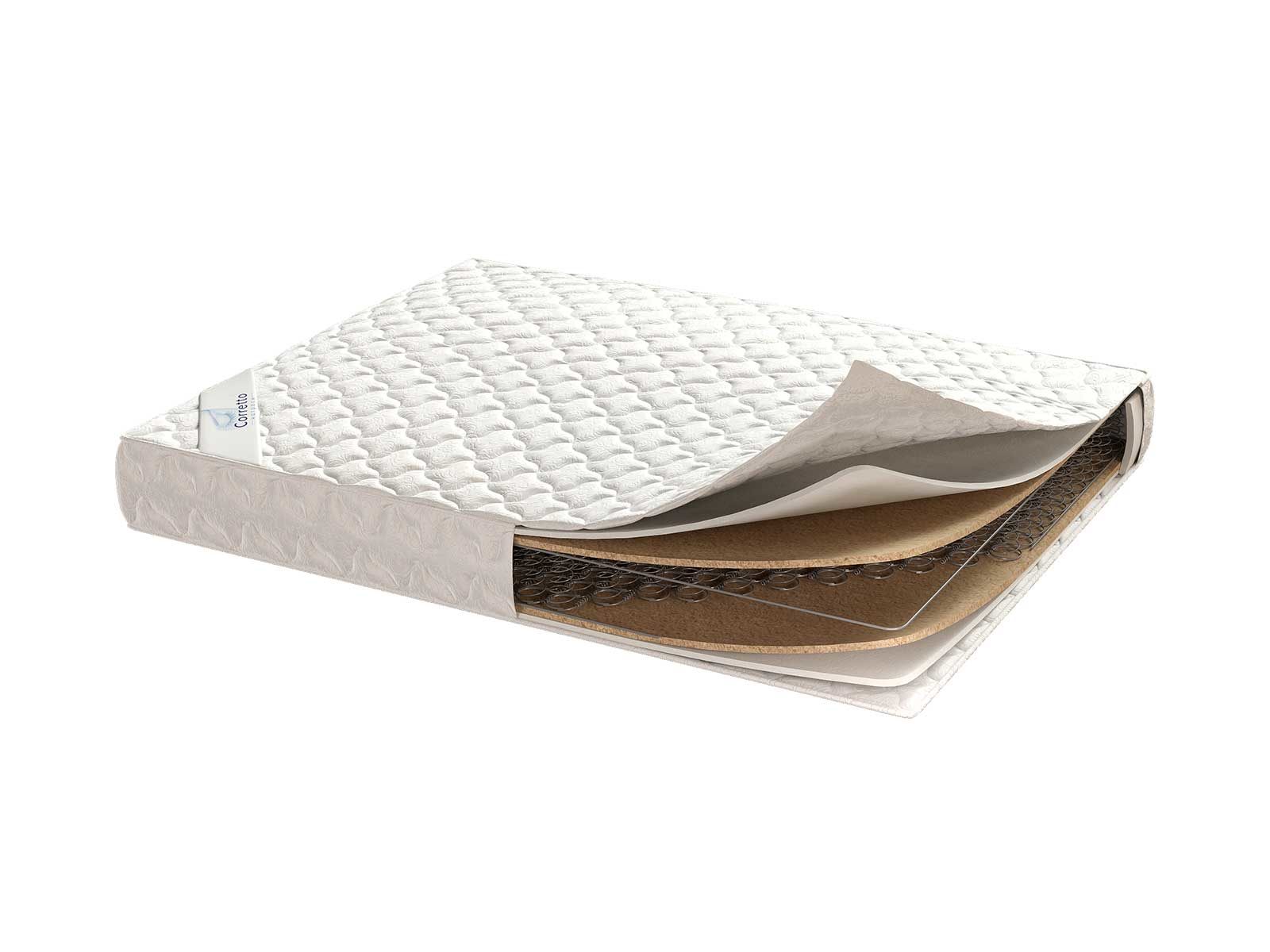 Для тех, кто предпочитает простые пружинные матрасы, компания Corretto разработала модель Eco-Coco-Foam-100. Это классическое изделие построено на пружинном полотне «Боннель» и гипоаллергенных материалах, таких как койра кокоса и пенополиуретан.
