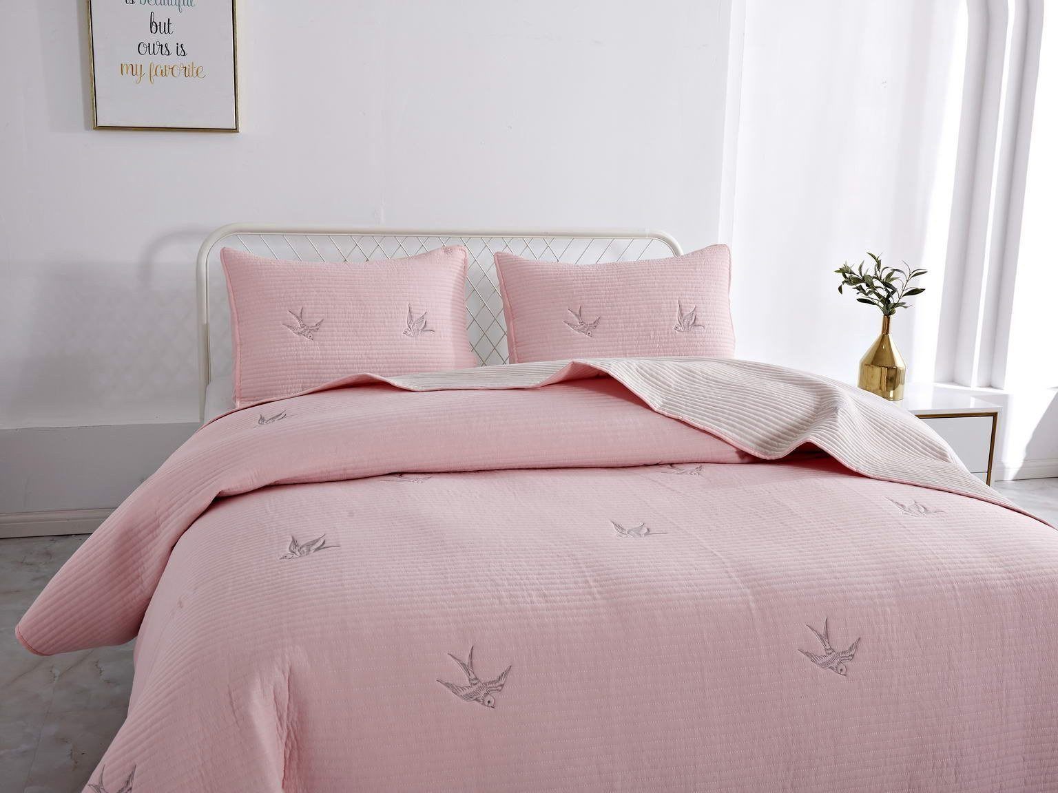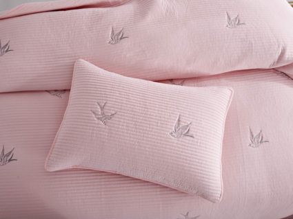 Покрывала этой коллекции выполнены из смеси хлопка и вискозы, используются только натуральные красители в пастельных тонах, тщательно продуманный рисунок напоминает о летнем небе и бескрайних полях южной Франции. Розовые или пудровые оттенки помогут создать романтичную атмосферу, более холодные хорошо подойдут для оформления мужской спальни.