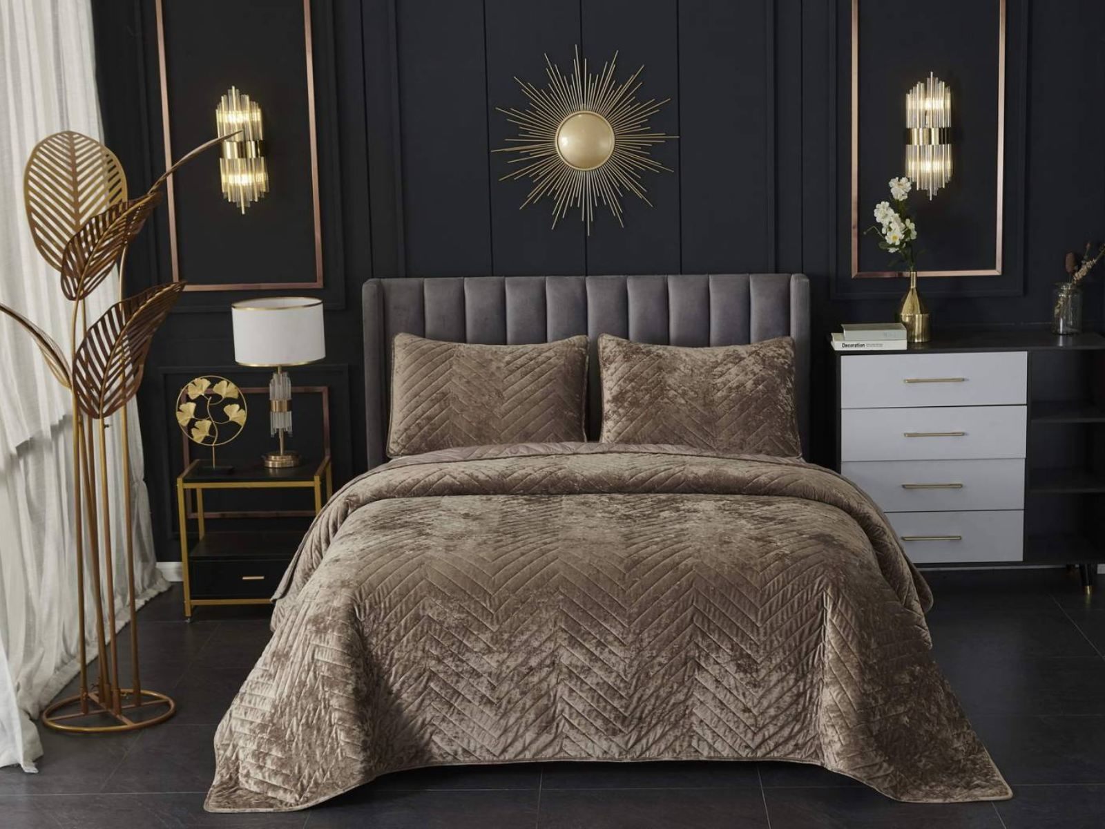 Покрывала Фернанд выглядят как будто сошли с картин, изображающих королевские покои. Бархатную ткань начали изготавливать еще в Средние века, её использовали в оформлении дворцов и изготавливали плащи и головные уборы для знати. Теперь и вы можете прикоснуться к этой роскоши! Бархатная текстура приятная на ощупь, а из-за особого плетения ткани, игра света на ней выглядит благородно. Поэтому покрывало Фернанд создаст необычайно уютную атмосферу в вашей спальне. Цветовая гамма разнообразна и включает восемь благородных оттенков: капучино, бежевый, изумруд, горчичный, терракотовый, пепельная роза, серый, стоун. За покрывалом Фернанд легко ухаживать: стирка при температуре 30 градусов, вручную или в машинке. Важно хорошо просушить изделие! При правильном уходе вещь прослужит долгие годы не потеряв форму и цвет.