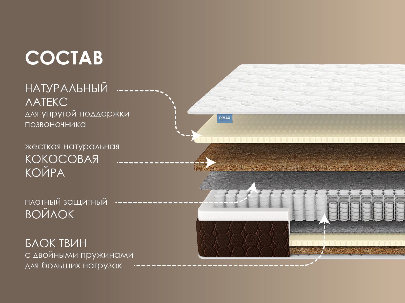 Димакс Твин Ультимейт создан специально для пар с разницей в весе или для больших нагрузок. Внутри матраса расположился уникальный блок пружин «Твин», который помогает грамотно распределять нагрузку до 170 кг на спальное место, даря обоим партнёрам полноценный отдых. Высота изделия – 27 см.